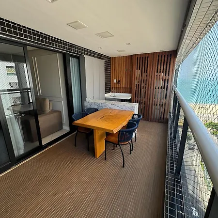 Apartamento coberturas praia do futuro tem varanda e cozinha totalmente equipada, e confortos como controle de temperatura.